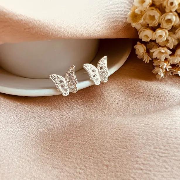 Brinco mini borboleta, antialérgico, banhado a Prata 925. Acabamento com uma camada de verniz para maior durabilidade do banho. Níquel Free.