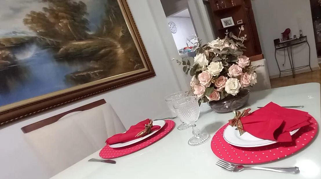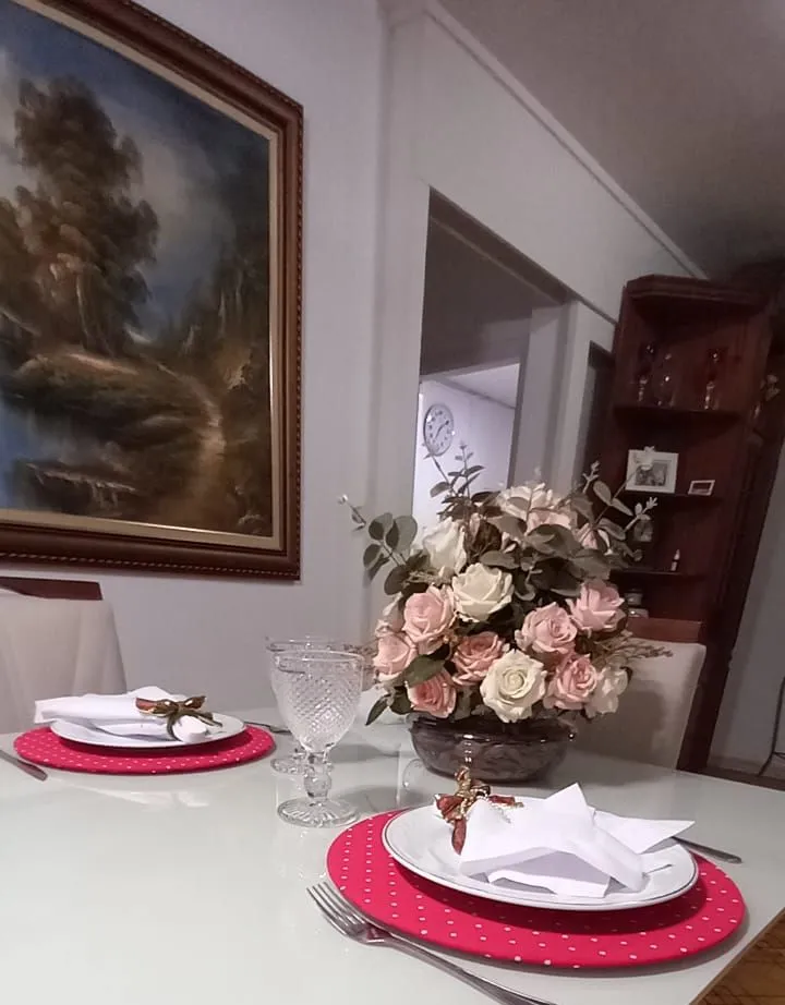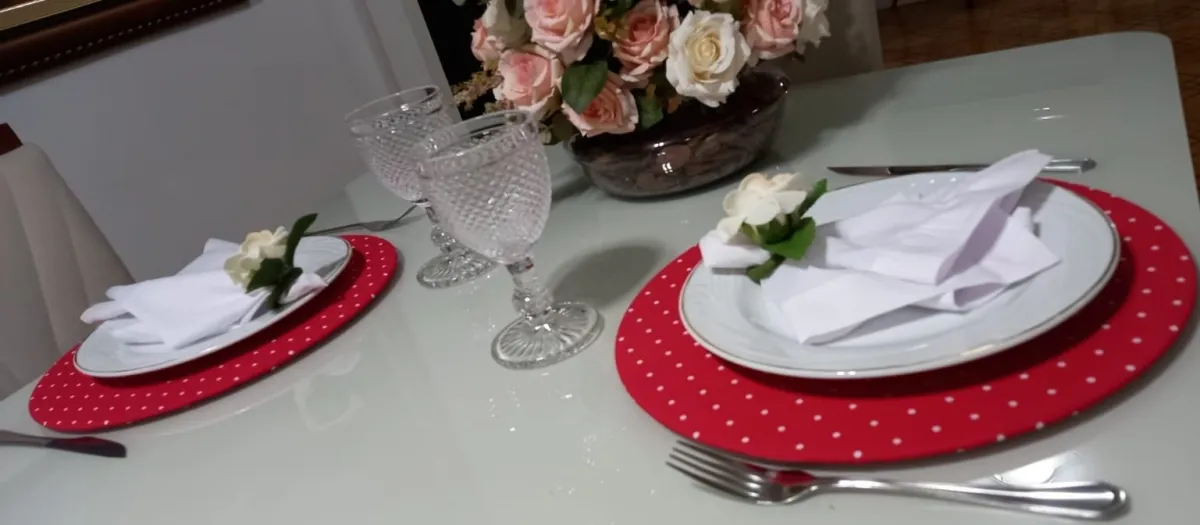 Mesa posta produzida com materiais nobres e fino acabamento.