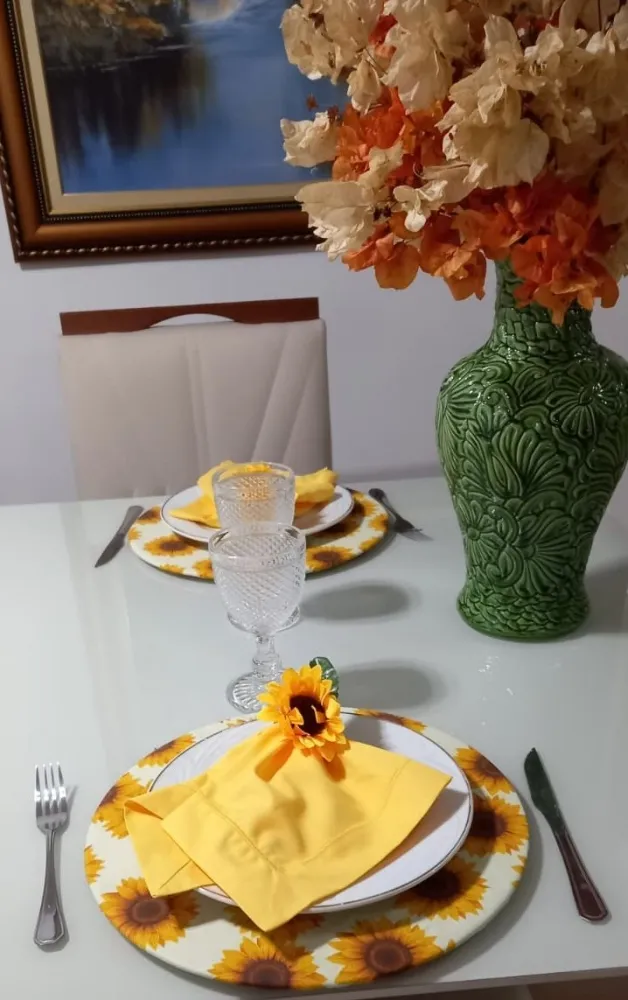 A Best4You, inovando sempre e trazendo novidades, apresenta a linha de artigos que compõem a mesa posta. São produtos produzidos com materiais de excelente qualidade e fino acabamento. Os sousplats produzidos em MDF – leve e resistente - têm a circunferência de 35 cm de diâmetro. O tecido que compõem os suplás é nobre de tricoline em cores vivas e de excelente bom gosto.