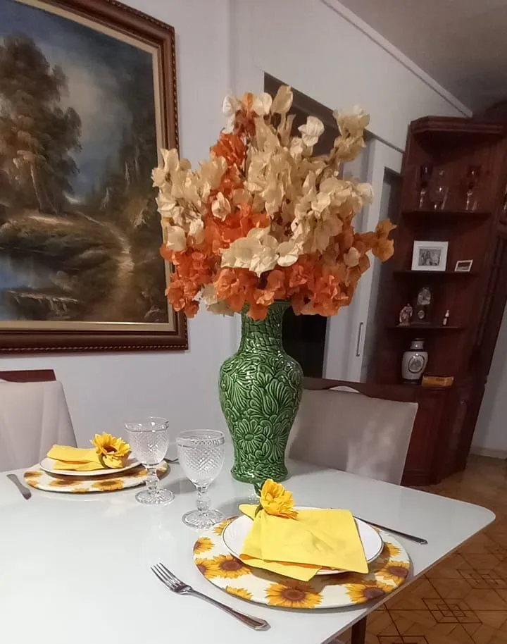 Mesa posta produzida com materiais nobres e fino acabamento.