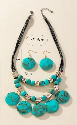 Conjunto colar e brincos pedras redondas, duas voltas, na cor verde e detalhes em ouro 18K. Super elegante. Pode ser usado em qualquer ocasião. Fino acabamento.