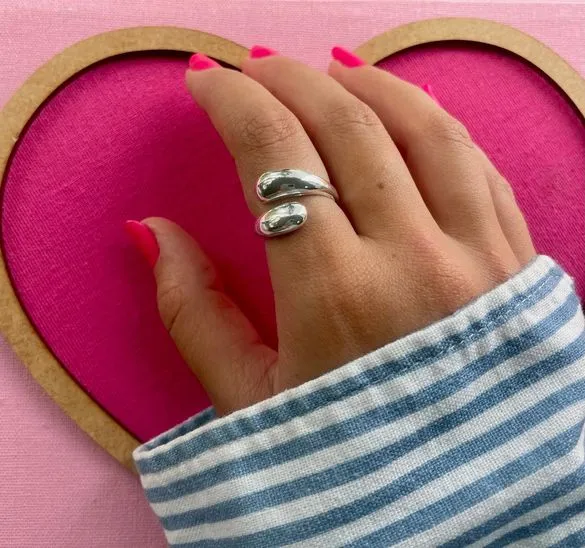 Anel Gota, regulável e banhado a 50 milésimos de Prata 925.